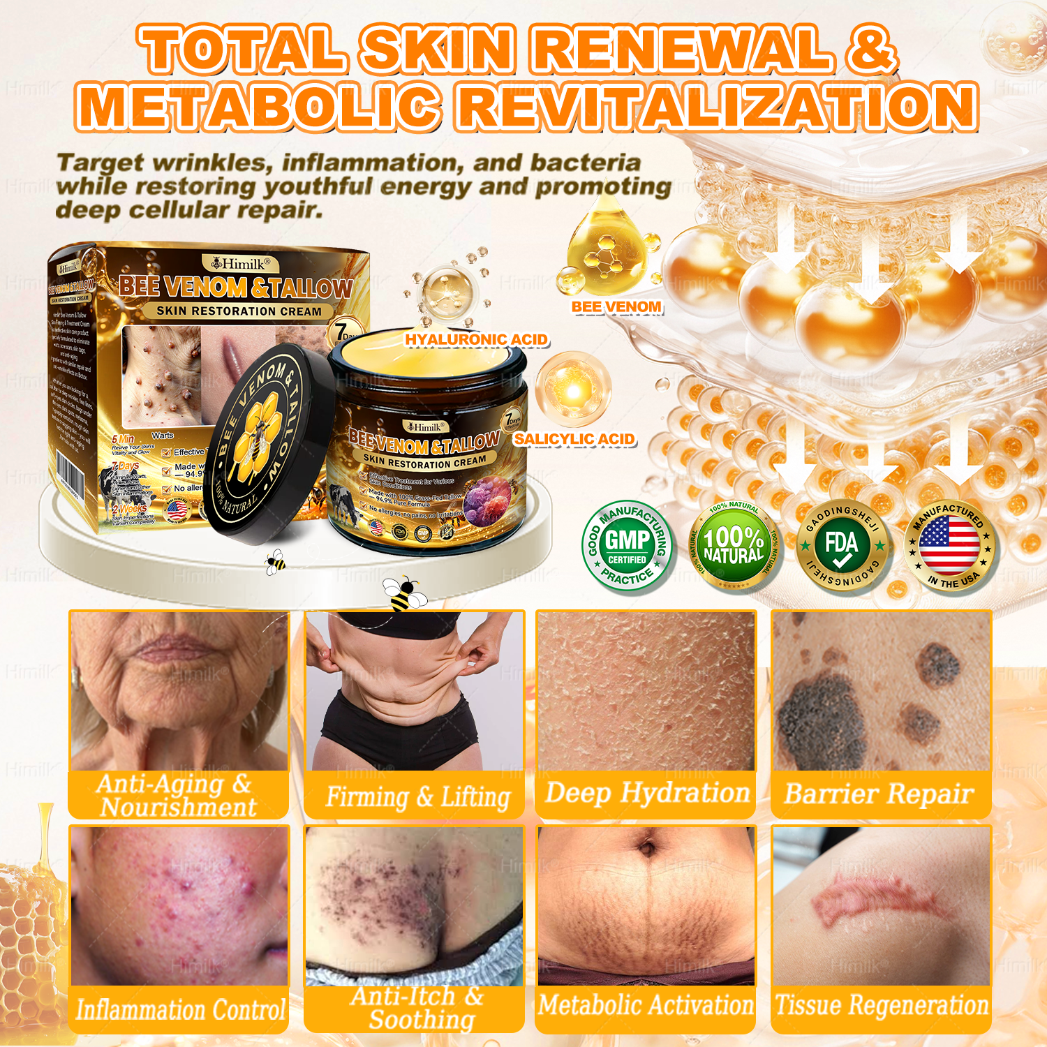 From birth to old age, our skin faces countless challenges โ from acne, scars, and pigmentation to dryness, sensitivity, and loss of firmness. Moles, warts, eczema, and irritation often persist without an effective, all-in-one solution. ๐ฏ๐๐ข๐๐ก๐ ยฎ ๐ฉ๐๐ ๐ฝ๐๐ฃ๐ค๐ข & ๐ป๐๐ก๐ก๐ค๐ฌ ๐บ๐ค๐ข๐ง ๐๐๐ฌ๐ญ๐จ๐ซ๐๐ญ๐ข๐จ๐ง ๐พ๐ซ๐๐๐ฆ was created to change that. Formulated with natural bee venom, grass-fed tallow, hyaluronic acid, collagen, vitamin C, centella asiatica, ashwagandha, and other restorative botanicals, it delivers deep hydration, barrier repair, anti-inflammatory relief, and anti-aging nourishment. Clinically validated and produced in GMP-certified facilities, it provides a safe, effective, and drug-free solution for dryness, inflammation, irritation, and aging โ restoring comfort, resilience, and lasting skin health.