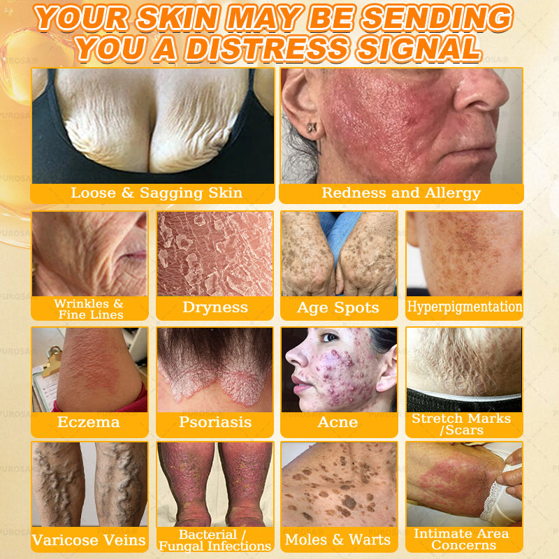 Many people struggle with dry, damaged, and sensitive skin marked by pigmentation, purpura, and age spots. Aging, sugar-rich diets, and weight changes speed up collagen loss, causing sagging, wrinkles, and fine lines. Fair-skinned individuals are more prone to moles, warts, eczema, and psoriasis, while acne, fungal, and bacterial issues leave scars and discomfort. Women often face additional irritation and microbiome imbalance. Beneath these skin problems lie deeper worries โ loss of confidence, emotional stress, and growing anxiety about aging and self-image.