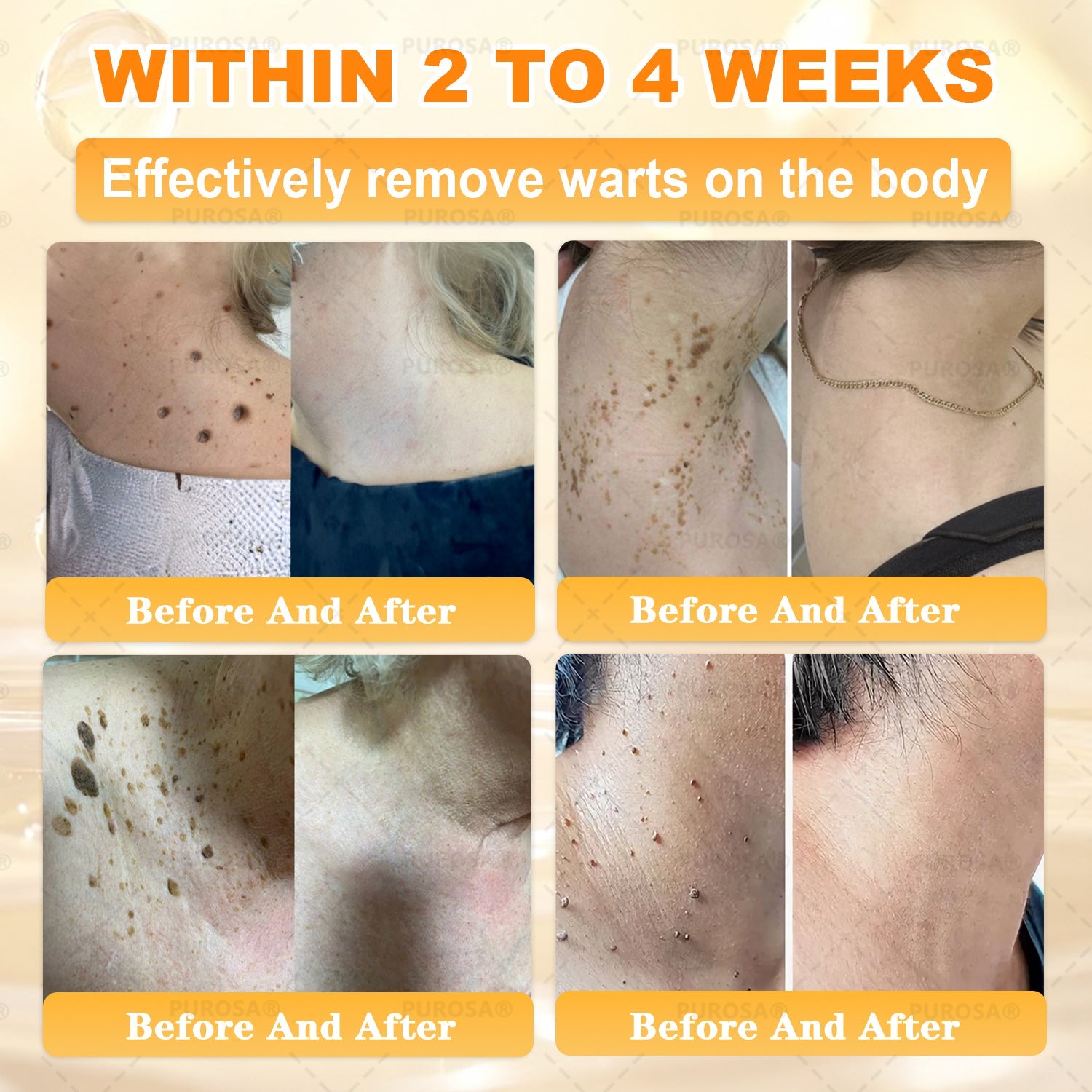 Moles and warts often form due to abnormal skin cell growth or mild viral irritation. This formula helps correct that imbalance naturally. Bee venom and propolis support healthy cell renewal, helping the skin shed abnormal growths safely, while salicylic acid gently softens keratin buildup so moles and warts dry up and fall off. Centella asiatica and aloe vera calm irritation, and grass-fed tallow strengthens the barrier to prevent dryness and scarring. With consistent use, most users notice visible fading in 7โ10 days and up to 80% reduction in size within three weeks, leaving skin clearer, smoother, and less prone to recurrence.